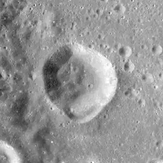 Moissan is a lunar impact crater that is located on the far side of the Moon, within the west rim of the large crater Mendeleev, and due south of the similar-sized Bergman.