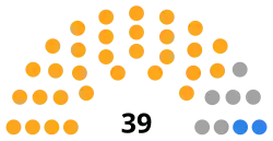 Since the last boundary changes in 2023 the council has comprised 39 councillors representing 13 wards, with each ward electing three councillors. Elections are held three years out of every four, with a third of the council (one councillor for each ward) elected each time for a four-year term of office. Surrey County Council elections are held in the fourth year of the cycle when there are no district council elections.[17]
