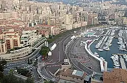 The Monaco Kart Cup was contested at the Circuit de Monaco, a street circuit in Monte Carlo, home of the Formula One Monaco Grand Prix since 1929. The track featured the port complex of the Grand Prix circuit—Tabac, La Piscine and La Rascasse—as well as the Formula One pit lane. The exit of the pit lane was connected to the port via a ramp and a hairpin corner.[2] The 1,075 m (3,527 ft) circuit featured over 2,400 Tecpro barrier modules, 120 marshals, eight cameras, and four jumbotrons.[3]