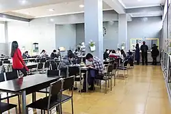 MIU operates a cafeteria-style dining facility on-campus. Meals and snacks are served every weekday to students and faculty. The lunch menu options include Mongolian and Korean dishes. On campus, there is a Gilgal Cafe that serves coffee, tea, and baked goods.