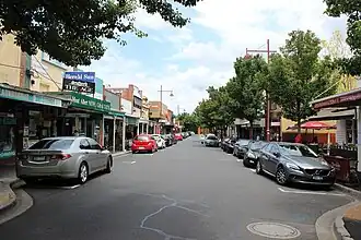 The local shopping centre, located just south of the railway station, began construction in 1913. In 1915, a tram service along Whitehorse Road to the suburb's north-western corner was established. Houses between tram and railway lines are distinguished by Edwardian, English Domestic Revival, and Arts and Crafts styles.[4]