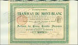 The Mont Blanc tramway or Tramway du Mont-Blanc (French pronunciation: [tʁamwɛ dy mɔ̃ blɑ̃], TMB) is a mountain railway line in the Haute-Savoie department of France. It is the highest in France and the fourth highest in Europe. It is also the only railway in France reaching over 2,000 metres above sea level.[1]