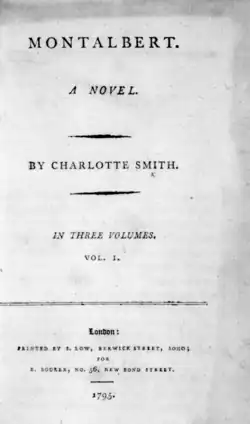 Montalbert (1795) is a novel by Charlotte Smith. The story is set in England and Italy in 1782 and 1783, with the 1783 Calabrian earthquakes playing a role in the narrative.[1] The novel responds to Ann Radcliffe's famous Gothic novel A Sicilian Romance (1790), especially through its plot of a disenfranchised young woman seeking her lost mother.[1]