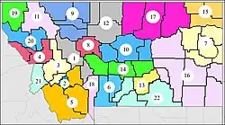 ![]() The 22 judicial districts of the District Courts of Montana | |