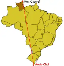 Monte Caburaí is a mountain located on the border between Brazil and Guyana standing at 1,465 metres (4,806 ft) above sea level. It is the northernmost point of Brazil and is the source of the Ailã River.[1]