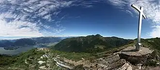 Monte Gambarogno (1,734 m) is a mountain of the Lugano Prealps, overlooking Lake Maggiore in the canton of Ticino. It lies on the range between Lake Maggiore and Lake Lugano, culminating at Monte Tamaro.