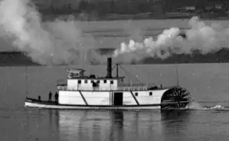 The keel was laid on October 8, 1881.[5] The hull and planking were from Oregon fir.[5] The cabin structure, called the "house", was built of cedar.[5] By December 4, 1881, planking was complete on the new steamer.[6] It is possible that the vessel was originally intended to be named Chehalis.[5]