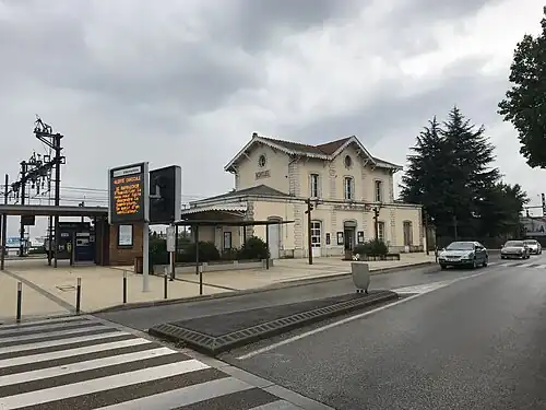 Operated by the SNCF, the station has a passenger building equipped with automatic vending machines for purchasing tickets.[6] Since 2012, a fully accessible passenger overpass has allowed for movement from one platform to another.[4]