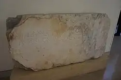 The Monument of Aemilius Paullus was erected in the Sanctuary of Apollo at Delphi shortly after 167 BCE in order to commemorate the Roman victory over King Perseus of Macedon at the Battle of Pydna. It incorporated an incomplete pillar originally intended as a base for a portrait of King Perseus, which would have established the Macedonian presence in Delphi and reminded the Delphians of the tradition of friendship between them and the royal family.[1] Aemilius Paullus repurposed the king's monument to celebrate himself and Rome's victory, noting that "it was only proper that the conquered should give way to the victors."[2] The Monument of Aemilius Paullus stood in front of the Temple of Apollo along with two other commemorative pillars to Eumenes II of Pergamon and Prusias II of Bithynia.[3] However, this pillar dominates over the other two. The completed monument had a bronze equestrian statue that sat on top of a rectangular pillar over 9 meters high.[4] Although the bronze statue that originally sat atop the pillar no longer remains, the cuttings in the plinth show that the horse would have been in a rearing position. An inscription at the base of the pillar survived, L(ucius) Aimilius L(uci) f(ilius) inperator de rege Perse / Macedonibusque cepet, which translated, reads, "Lucius Aemelius, son of Lucius, Imperator, took it from King Perseus and the Macedonians."[5]