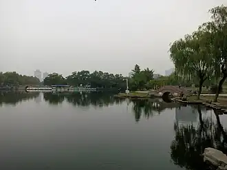 The Moon Lake, also known as the West Lake, is a man-made lake in Haishu District, Ningbo, Zhejiang. It is a municipal conservation zone for history and culture in Ningbo.[1]