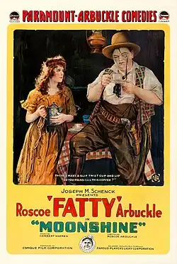 Moonshine is a 1918 American two-reel silent comedy film directed by and starring Roscoe "Fatty" Arbuckle and featuring Buster Keaton.[2] The movie is available on YouTube.[3]
