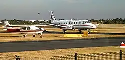 Moorabbin (Harry Hawker) Airport (IATA: MBW, ICAO: YMMB) is a general aviation airport for light aircraft located in between the southern Melbourne suburbs of Heatherton, Cheltenham, Dingley Village and Mentone. It also receives commercial airline service. The airport grounds are treated as their own suburb, and share the postcode 3194 with the neighbouring suburb of Mentone. With a total of 274,082 aircraft movements, Moorabbin Airport was the second busiest airport in Australia measured by aircraft movements for the calendar year of 2011.[5]