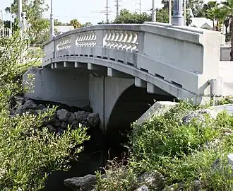 Moores Creek Bridge is an historic single span reinforced concrete bridge located on North 2nd Street between Avenues B and C in Fort Pierce, Florida. Including run up, it is 46 feet long. It is known locally as the Tickle Tummy Bridge or Tickle Tummy Hill because of its high arch relative to its short length.[2] On August 17, 2001, it was added to the U.S. National Register of Historic Places.