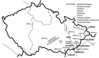 Moravia is ethnographically divided into approximately ten regions,[14] some of which, Dolňácko for example, are divided further into subregions.