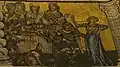 | Jacob Meets Joseph | It differs from the preceding scenes by a richer palette of colours, though this could be due to a different mosaicist, whilst its lively composition in almost pathetic tones may attribute them to the Master of the Maddalena (Pesenti, 1978–1979). |