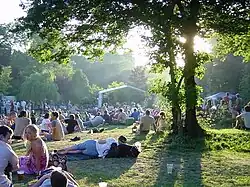 The park is home to tennis, angling and yoga clubs,[9] and hosts annual music festivals,[10][11] including the Moseley Folk & Arts Festival,[12] and Mostly Jazz.[13] Ocean Colour Scene, who originate from the area, headlined a festival at the park in 2016 to celebrate the 20th anniversary of their album Moseley Shoals.[14]