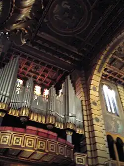 Between 2011 and 2013, the 12 images of the apostles, the chapel of the Blessed Sacrament, the side chapels and the organ with 6,000 pipes, which was installed in 1954 during the celebrations of São Paulo's fourth centenary, were restored. The six panels in the chancel depicting scenes from the life of Mary, the sacred sculptures and the images of St. Benedict and St. Scholastica, sculpted in 1650 by Agostinho de Jesus, were also restored. In 2016, the Crucified Christ, made of cedar by José Pereira Mutas in 1777, was restored after being damaged by pollution and grease from people's hands. The wall where the sculpture is located was also recovered.[15][16][17][18]