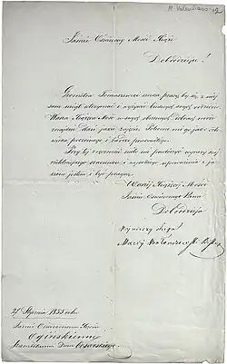 Letter of bishop Motiejus Valančius to prince Ogiński