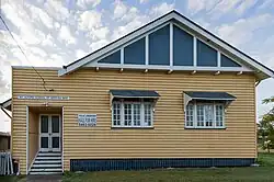 The first Lutheran services in Mount Alford were held in the School of Arts by Pastor Christian Wilhelm Seybold.[13] On 23 October 1908, a meeting was held that decided to build a church. Mr Wissemann offered an acre of land. By December 1908, local Lutherans had raised £120 towards a church building.[15] The church was built by the Behrendorff family (Ambrosius Victor, Wilhelm Carl Johann, and Carl) using sawn timber for the Behrendorff sawmill. The finished church was 30 feet long and 24 feet wide and cost £155 (including the fence).[13] The Lutheran church in Mount Alford was opened and dedicated on 7 May 1909.[16] The original trust for the church stipulated that only married men and widowers could be trustees (but not bachelors). An English Sunday School commenced on 26 August 1911 (most Lutheran churches conducted their activities entirely in German until World War I at which time many switched to the use of English to avoid suspicion about their loyalties).[13] The first baptism in the church was W. Behrendorff. The first couple to be married in the church were Wilhelm Labuschewski and Mary Louisa Kaden on 27 September 1911.[13] The church building was lined in 1936 for its 25th anniversary. A bible was presented by Mr and Mrs J. Gesler in 1943. In 1956 Charles Behrendorff made a baptismal font and a new altar was built in 1959. The pastors of the church (until 1988) were Christian Wilhelm Seybold, Rudolf Monz, Anton Hiller, Martin Frederick Prenzler, Alfred Hugo Schubert, Gerald David Dahlenberg, David Frederick Siegle, J. Perkins, R. Goldhardt, and K.D. Kotzur.[13] The church subsequently closed and is in use as a private residence, but a notice over its doorway says "St John's Lutheran Church – Estd 1909".[17]