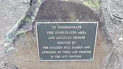 An Anglican cemetery was established with its first burial (Gertrude Augusta Bell) on Sunday 11 August 1946.[21][22] The church held its last service on 25 December 1969.[23] On 11 December 1973, it was decided to sell the church building for removal.[13][24] In 2017, Bowman Park occupies the site of the church and cemetery. A plaque commemorates the church and a memorial commemorates the Bell family members who were buried there.[13]
