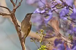 Kings Park and the Mount Eliza escarpment has been subject to various long-term studies on urban avifauna. A study in 1996 found that the Brown Honeyeater and Red Wattlebird were the two most abundant birds in the Mount Eliza escarpment.[13] In addition, the study found that there was a higher abundance of birds, specifically nectivores during the spring season, likely due to the flowering plants. Despite this increase, there was a relatively small amount of nectivores in the Mount Eliza escarpment compared to other regions studied. Furthermore, a study in 2013 found that the three most abundant species in the bushland surrounding Mount Eliza were the Brown Honeyeater, Singing Honeyeater and Red Wattlebird.[14]