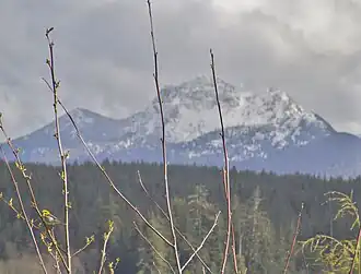 The mountain and the sounds around it are home to abundant wildlife, such as black bears, whales, orcas, sea lions, and hundreds of thousands of seabirds.[6] There are also invasive Sitka black-tailed deer,[7] porpoises, dolphins, and tidal-zone animals in the area.