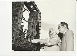 The park also features a memorial monument by renowned Jewish artist Bernard Zakheim. The memorial is dedicated to the six million Jews who were murdered in the Holocaust. Six three-dimensional figures, all rendered in burnt and tortured wood, represent six heroic Jewish figures: those who resisted partisan fighters, a woman warrior, the schoolgirls who martyred themselves, a scholar and a child who could not resist, and one figure that stands for those who went passively to their deaths.