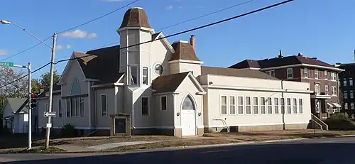 Mount Sinai Temple congregation was established in 1898. However, the Reform Jewish community had organized a cemetery association in 1869 and had been worshipping regularly in concert with the Unitarian Church of Sioux City.[5] The Mount Sinai Temple was designed by George Washington Burkhead in the Queen Anne-style, was built as a 1+12-story, frame, clapboard- and shingle-sided, building, and opened in 1901. Its 1922 addition was designed by William L. Steele was in Prairie School style.[2][5][6]