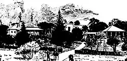 - From the verandah of the Manor House one overlooks the buildings of the township, the railway station, and a vast stretch of undulating country, broken by many hollows, which is one of the chief characteristics of mountain scenery, each succeeding ridge being bluer or more purple than the last, until the picture sinks away into a distance which mingles with the sky."[15]