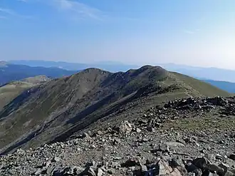 Mount Walter is the second highest named summit in the U.S. state of New Mexico, rising to 13,141 feet above sea level. However it is not usually counted as an independent mountain since it has only about 53 feet (16 m) of topographic prominence, and is only 0.4 miles (0.6 km) north-northeast of Wheeler Peak, the highest peak in New Mexico.[3] Both peaks lie in the Taos Mountains, a subrange of the Sangre de Cristo Mountains, which is in turn a subrange of the Rocky Mountains. They are also in the Wheeler Peak Wilderness of Carson National Forest.