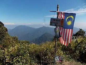 Mount Yong Belar (Malay: Gunung Yong Belar) is a mountain on the border of the states Kelantan and Perak in the Titiwangsa Mountains of Malaysia. Its summit is 2,181 m (7,156 ft) above sea level, making it the highest mountain in the state of Kelantan, and the third highest in Peninsular Malaysia, behind Mounts Tahan and Korbu, the latter being located 8 km north.
