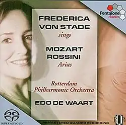 Frederica von Stade sings Mozart & Rossini Arias is a 52-minute studio album of operatic arias performed by von Stade and the Rotterdam Philharmonic Orchestra under the direction of Edo de Waart. It was released in 1976.[1] A second, 69-minute version of the album, Frederica von Stade: Haydn, Mozart & Rossini Arias, released by Philips on CD, adds bonus tracks derived from von Stade's contributions to Antal Doráti's recordings of Joseph Haydn's operas La fedeltà premiata and Il mondo della luna.[2][3][4] A third, 52-minute version released on SACD by PentaTone in 2005 reverts to the contents (and title) of the first version, but presents the music in quadraphonic surround sound.[1]