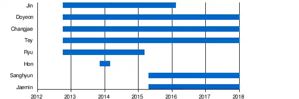 ![]() Mr.Mr in May 2013. (L–R) Changjae, Ryu, Jin, Tey and Doyeon. | |