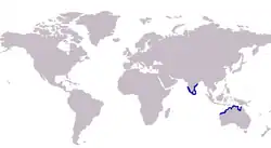The mud whiting is known to inhabit two regions, the north west coast of Australia from Exmouth Gulf in Western Australia[6] to the eastern Gulf of Carpentaria and the Arafura Sea, as well as the coasts of India and Sri Lanka.[4]