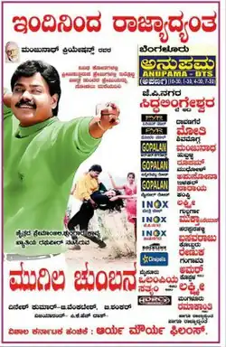 Mugila Chumbana (transl. Kiss of clouds) is a 2013 Indian Kannada-language romantic drama film directed by B Shankar. The film was also produced and co-written by Raghuveer, who also stars in the film alongside Shravanthi and Shakuntala.