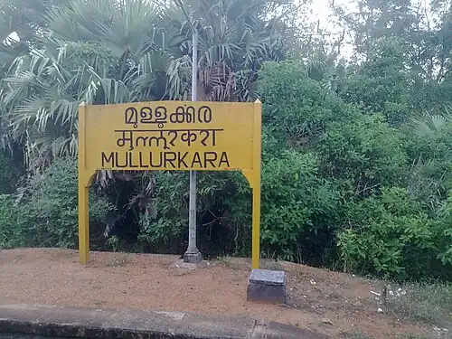 ![]() Name board of Mullurkara railway station | |||||