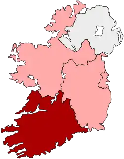 The constituency was created in 1979 for the first direct elections to the European Parliament. It comprised County Clare, County Cork, County Kerry, County Limerick, County Tipperary and County Waterford from the historic province of Munster including the cities of Cork, Limerick and Waterford.[1] It was abolished under the European Parliament Elections (Amendment) Act 2004 and succeeded by the new South constituency.[2]