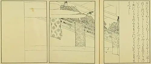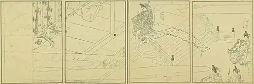 - ^ For an ukiyo-e reproduction of the full painting see Murasaki Shikibu Nikki Emaki n.d., pp. 25–26.