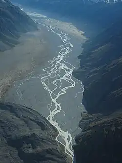 It is fed by the Murchison Glacier and flows into Tasman Lake, thus effectively feeding the Tasman River.