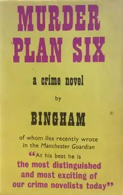 Murder Plan Six is a 1958 thriller novel by the British writer John Bingham.[1] It was released in the United States by Dodd Mead the following year.