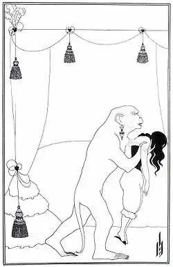 The tale has an underlying metaphor for the battle of brains vs. brawn. Physical strength, depicted as the orangutan as well as its owner, stand for violence: the orangutan is a murderer, while its owner admits he has abused the animal with a whip. The analyst's brainpower overcomes their violence.[8] The story also contains Poe's often-used theme of the death of a beautiful woman, which he called the "most poetical topic in the world".[9][10]