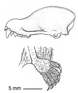 This species was only recently discovered and described. It is characterised by the attachment point of the plagiopatagium, its large skull size, the distinctive shape of the rostrum, and the relative sizes of the upper incisors.[2] It is known from Kirirom National Park, Cambodia where it was collected in disturbed semi-evergreen gallery forests.[1] It is also recorded from Thailand.[3]