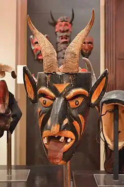 The initial collection was a donation made by anthropologist and researcher Victor Jose Moya Rubio and Mildred Dingleberry Himm, his lifelong loving wife.[2][4] Mexican masks are not only a handcraft, but also have symbolic and cultural value as their use is intimately connected with certain dances and festivals.[4] The masks come from Mexico's various ethnic traditions and mostly represent animals, devils/demons, saints, conquistadores, angels, and some fantastic creatures.[1][6] The museum also has a small collection of masks from other parts of the world, mostly from India.[2][4]