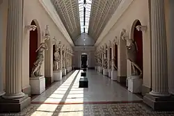 The French Artistic Mission was charged by John VI to organise the Royal School of Sciences, Arts and Crafts in Rio de Janeiro. Its first building – designed by French Neoclassical architect Grandjean de Montigny — was inaugurated in 1826, by Brazilian Emperor Peter I. On the occasion of the building's inauguration, the Royal School was renamed Imperial Academy of Fine Arts. In the following decades, the Imperial Academy, heir of John VI's holdings, was able to expand this collection, gathering an important assemblage of paintings and forming a glyptotheque.[5]