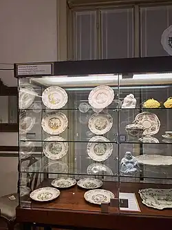 Three rooms include collections representing the development and spread of fine majolica production across multiple Italian regions and workshops in the 18th century.[19] These included Ferniani in Faenza, Clerici in Milan, Rubati in Turin, Finck in Bologna,[20] Casali and Callegari in Pesaro, Roletti in Urbino, Fuina in Castelli, Cialli in Rome, and Barone Malvica's workshop in Palermo. Major porcelain factories like those of Ginori and Cozzi also had adjoining workshops for majolica.
