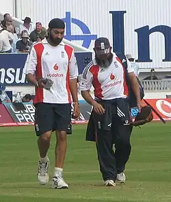 Musthaq Ahmed with English cricketer Monty Panesar during 2009 Ashes series