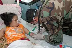 According to the Department of Homeland Security, a total of 6,024 Muslim-American troops served in overseas deployments in the ten years following 9/11, with 14 fatalities reported in Iraq. As of December 2015, there were approximately 5,897 active Muslim members of the US military, accounting for roughly 0.45% of total personnel. Because of military policies, practicing Muslim service members are required to shave off their beards and other facial hair and often face difficulties obtaining food that meets their dietary requirements.[11] The involvement of Muslim Americans in the military received increased public attention following events such as the September 11 attacks, the 2009 Fort Hood shooting, and Khizr Khan's 2016 Democratic National Convention speech.[12]