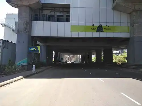 Muttom is a station of Kochi Metro. The station is located between Ambattukavu and Kalamassery.[1] The service line to the Metro Operations Control Centre and the train yard at Muttom branches off from here.