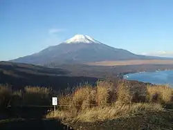 Myōjinyama (明神山) is a grassy area on a mountain ridge in Japan, 20 kilometres (12 mi) east from Mount Fuji and 5 kilometres (3.1 mi) south-east from Lake Yamanaka, off of road 147. The area is suitable for hiking and paragliding.