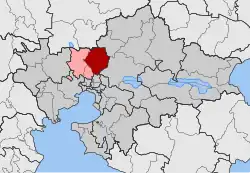 Mygdonia (Greek: Μυγδονία) is an administrative area in the Thessaloniki regional unit, Greece. A former municipality, since the 2011 local government reform it is part of the municipality Oraiokastro, of which it is a municipal unit.[2] It has a population of 9,830 (2021). The municipal unit of Mygdonia includes three communities, Drymos, Liti and Melissochori. The seat of the municipality was in Liti. The municipal unit has an area of 98.506 km2.[3]